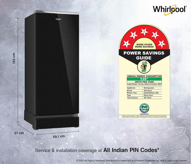 Icemagic Pro 207L 5 Star Glass Finish Single Door Refrigerator With Base Drawer